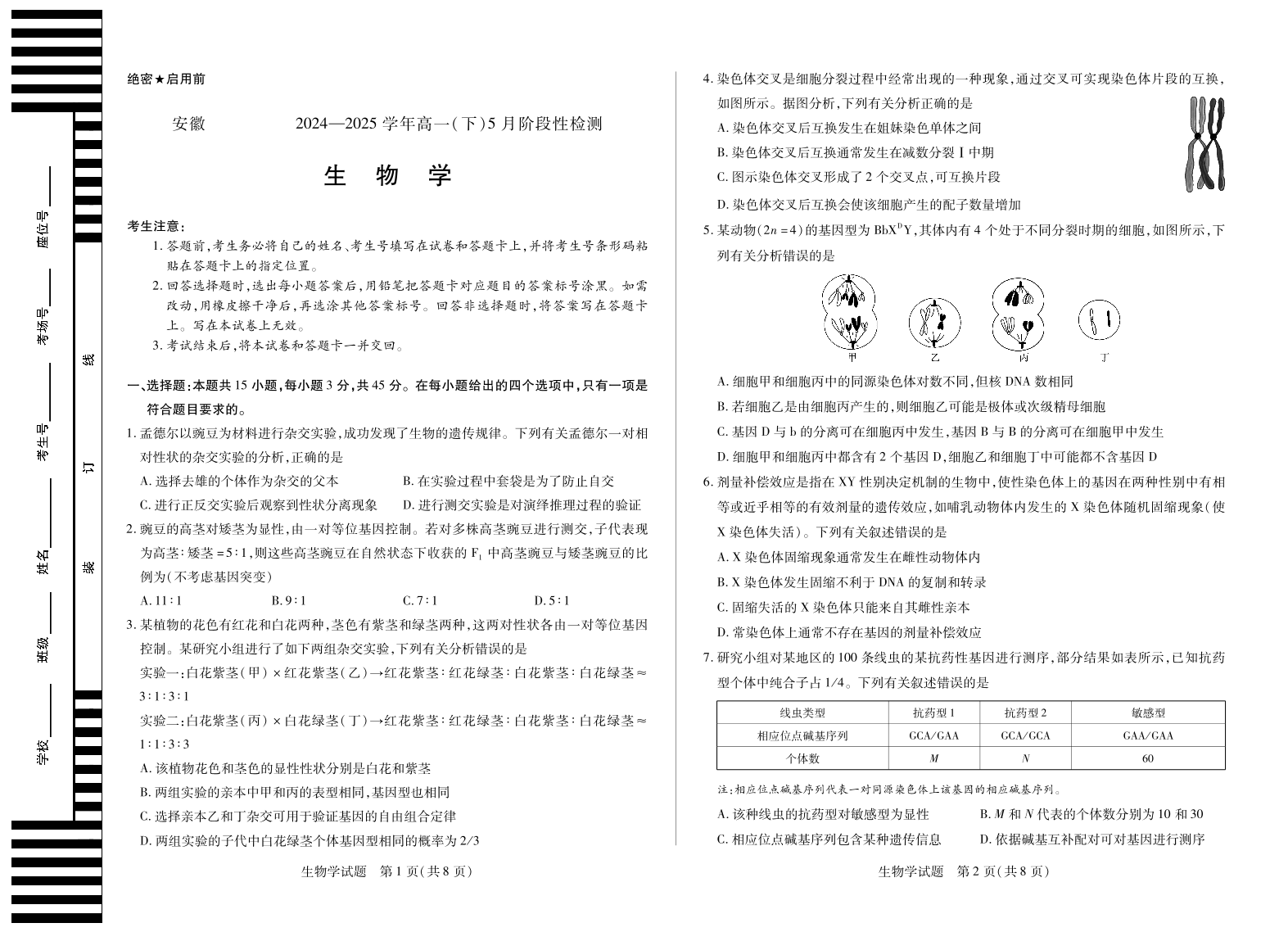 安徽省部分学校2024-2025学年高一下学期5月阶段性测试生物