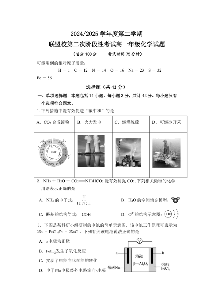 江苏省盐城市五校联盟2024-2025学年高一下学期5月第二次阶段性考试化学+答案