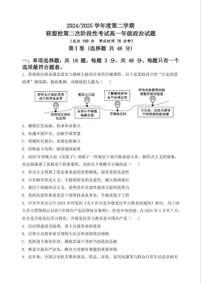 江苏省盐城市五校联盟2024-2025学年高一下学期5月第二次阶段性考试政治+答案