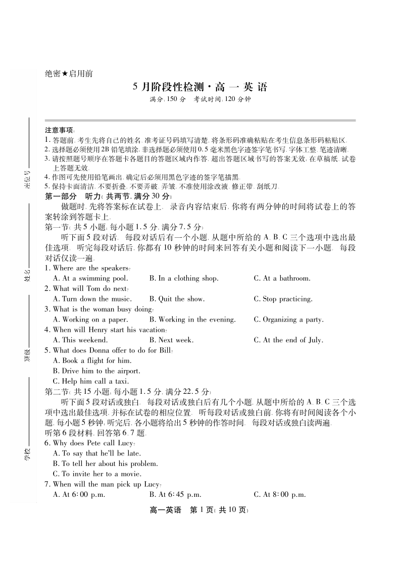 安徽省鼎尖名校2024-2025学年高一下学期5月联考试题英语+答案