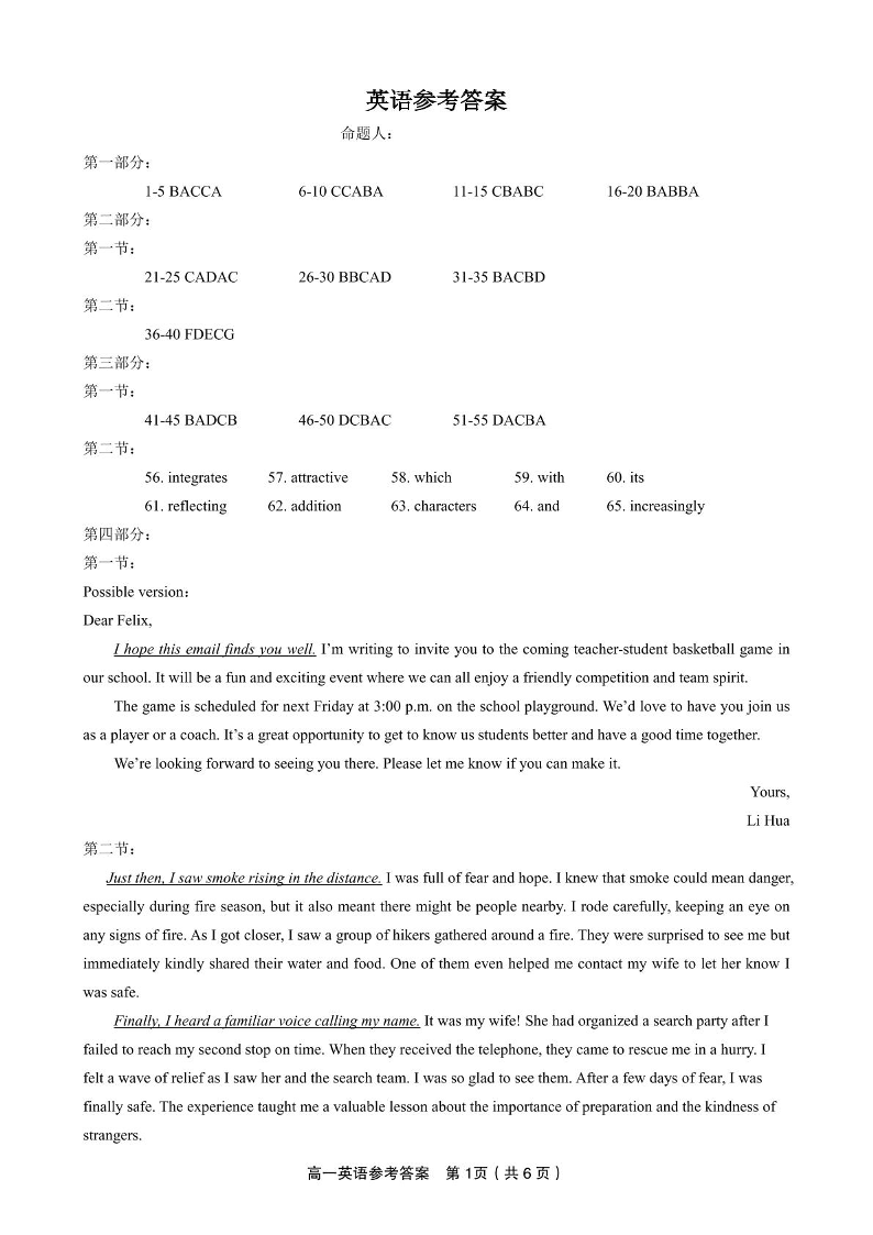 安徽省皖江名校2024-2025学年高一下学期5月月考试题英语答案