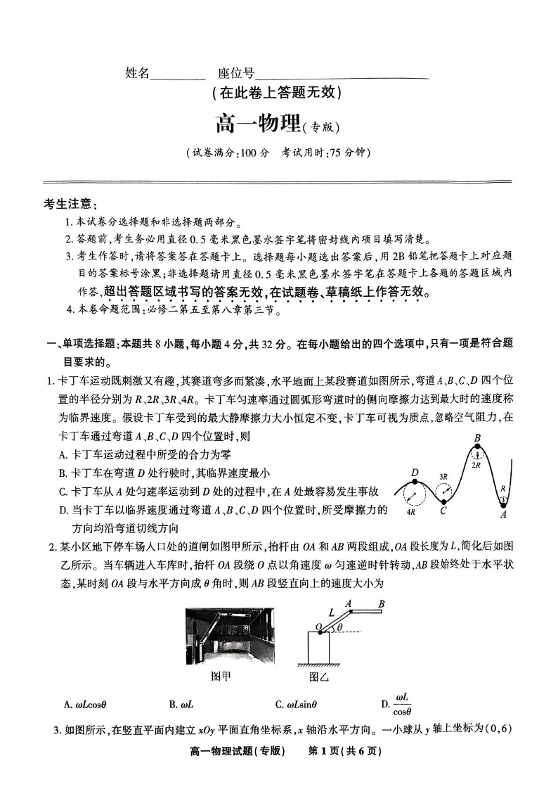 安徽省皖江名校2024-2025学年高一下学期5月月考试题物理