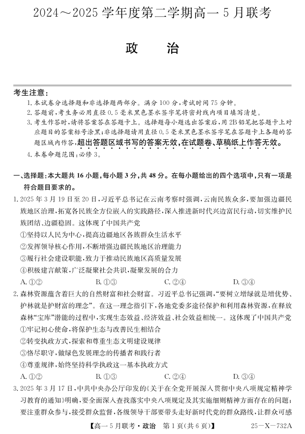 安徽省县中联盟2024-2025学年高一下学期5月联考政治