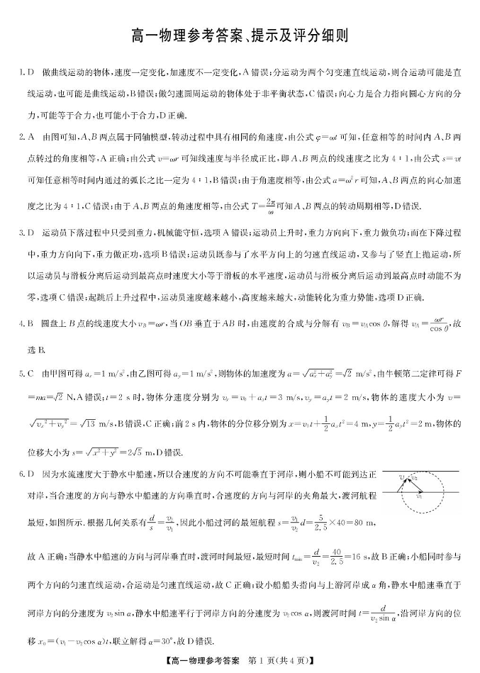 辽宁省普通高中2024-2025学年高一下学期5月期中考试物理答案