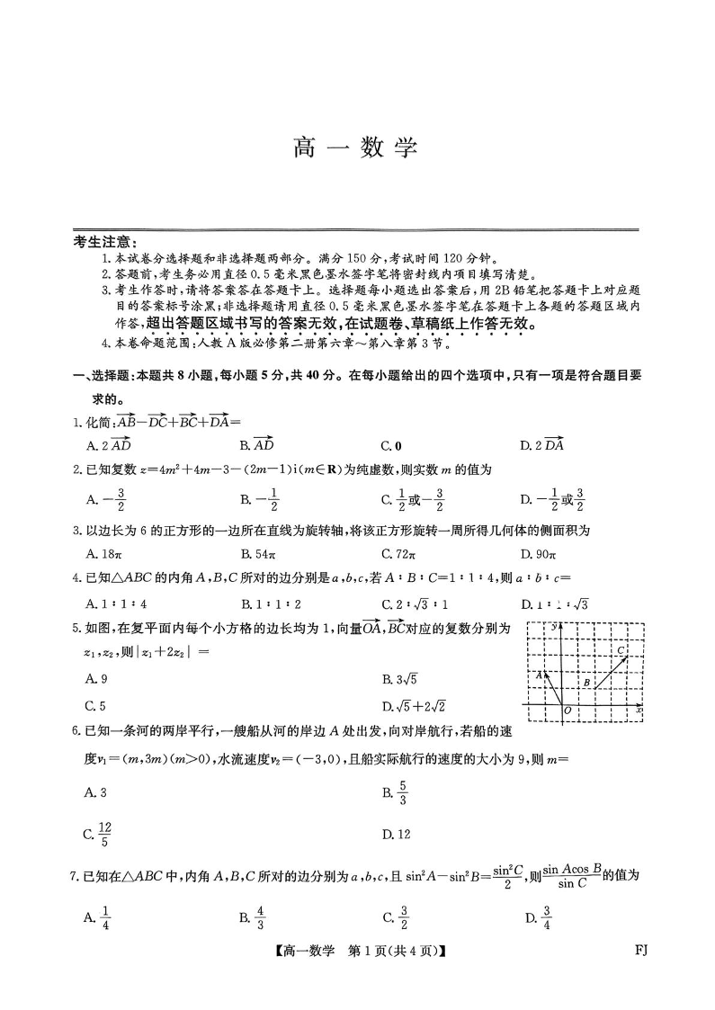 福建省福州市联盟校2024-2025学年高一下学期期中考试数学