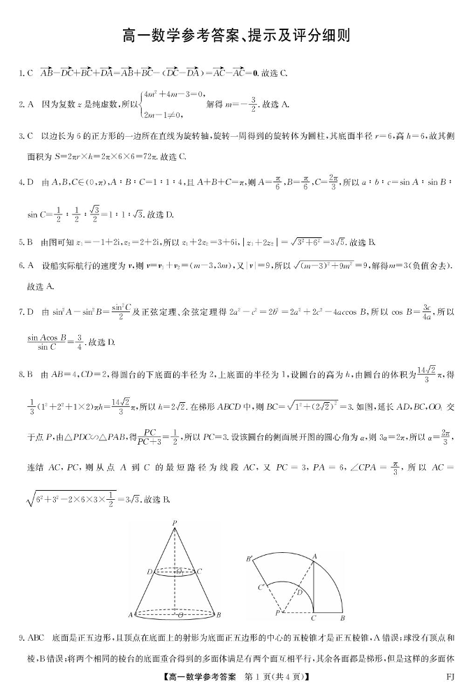 福建省福州市联盟校2024-2025学年高一下学期期中考试数学答案