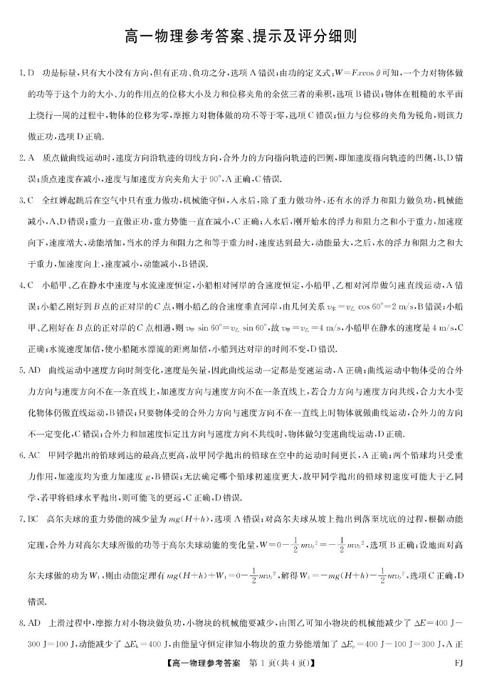 福建省福州市联盟校2024-2025学年高一下学期期中考试物理答案