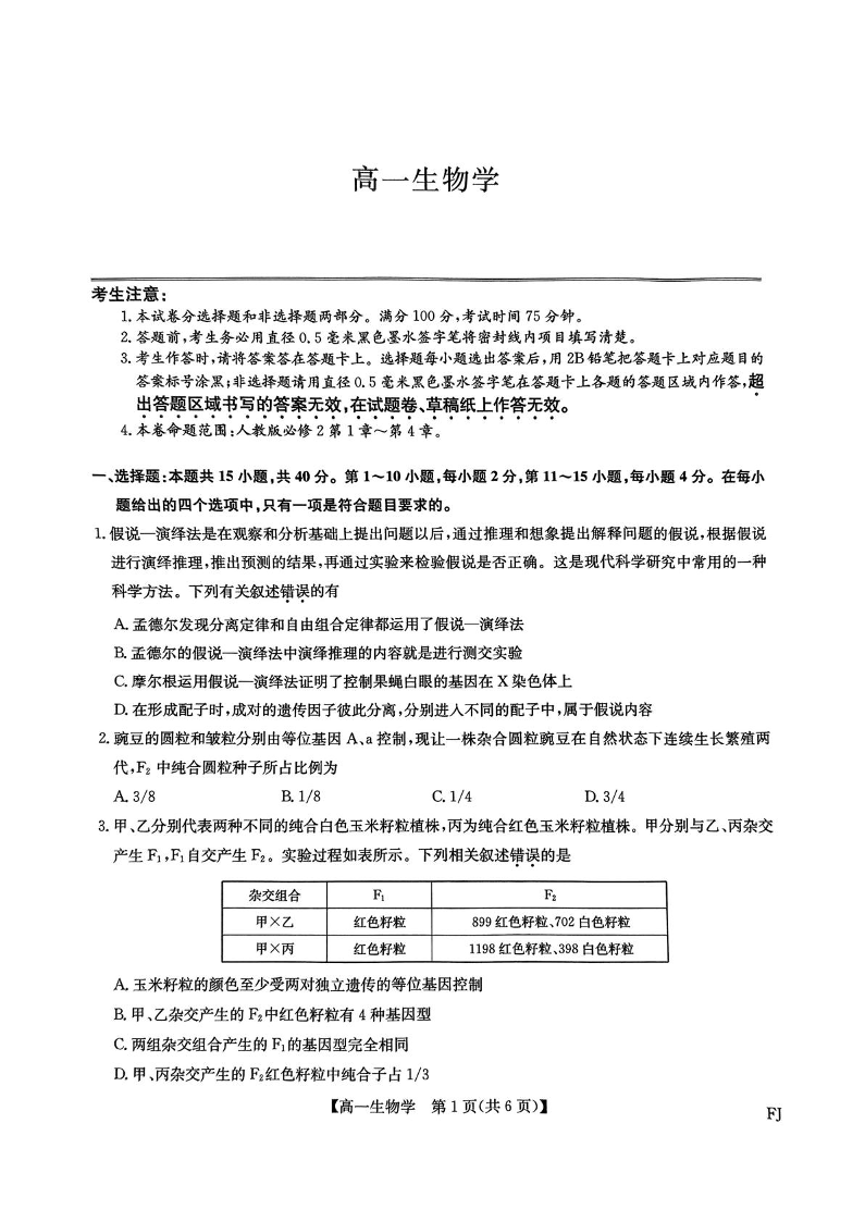 福建省福州市联盟校2024-2025学年高一下学期期中考试生物+答案
