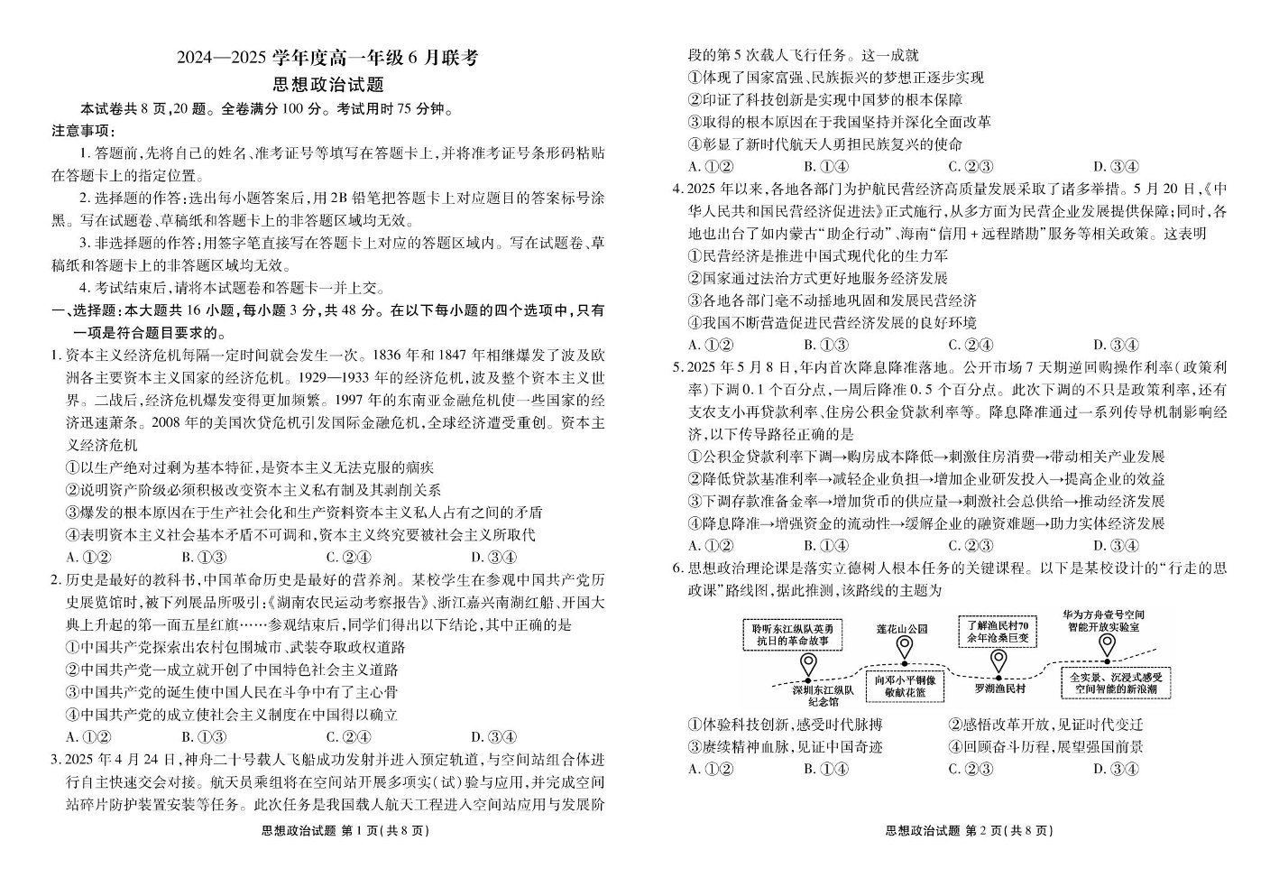 广东省部分学校2024-2025学年高一下学期6月联考政治+答案