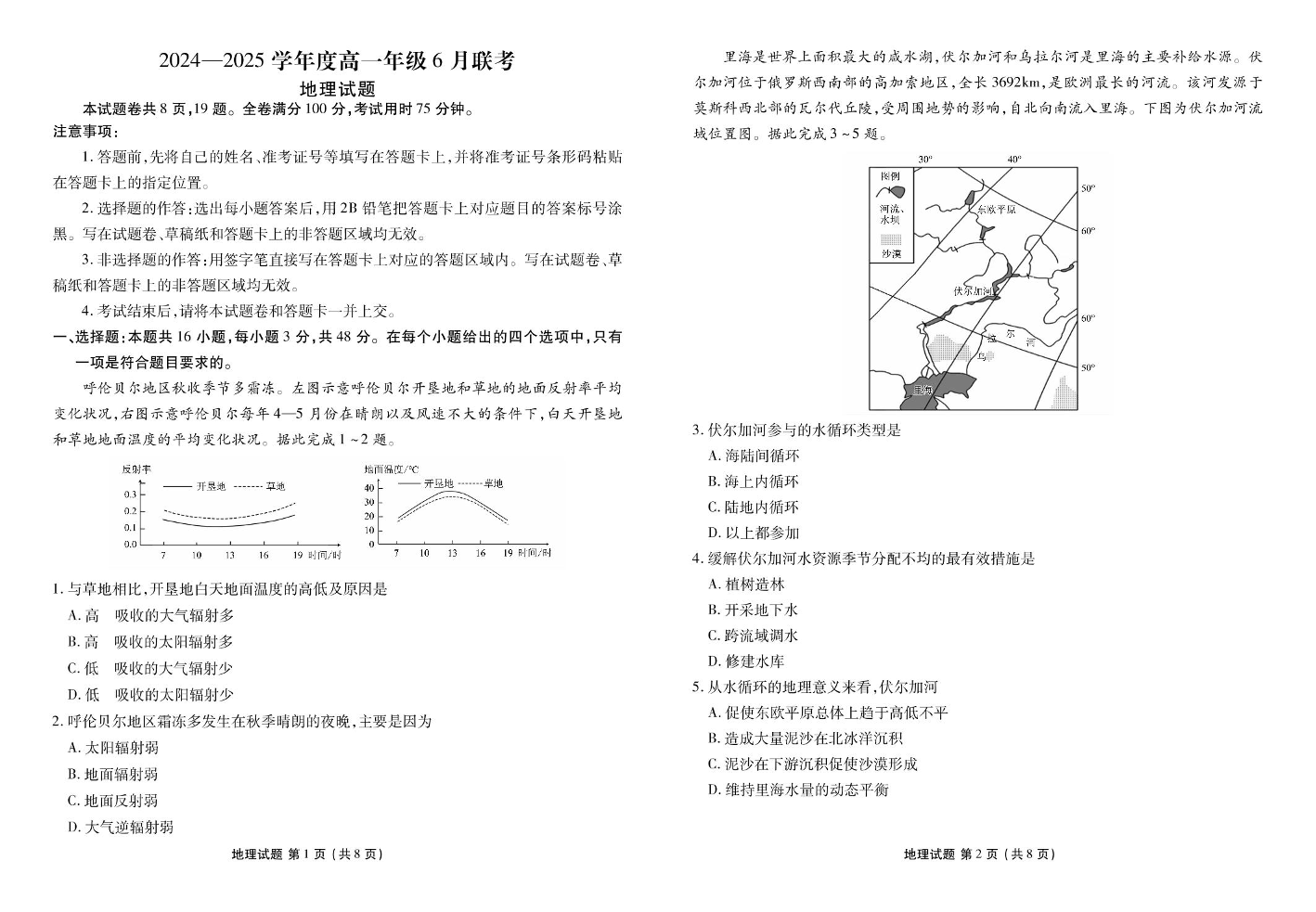 广东省衡水金卷2024-2025学年高一下学期6月联考地理+答案