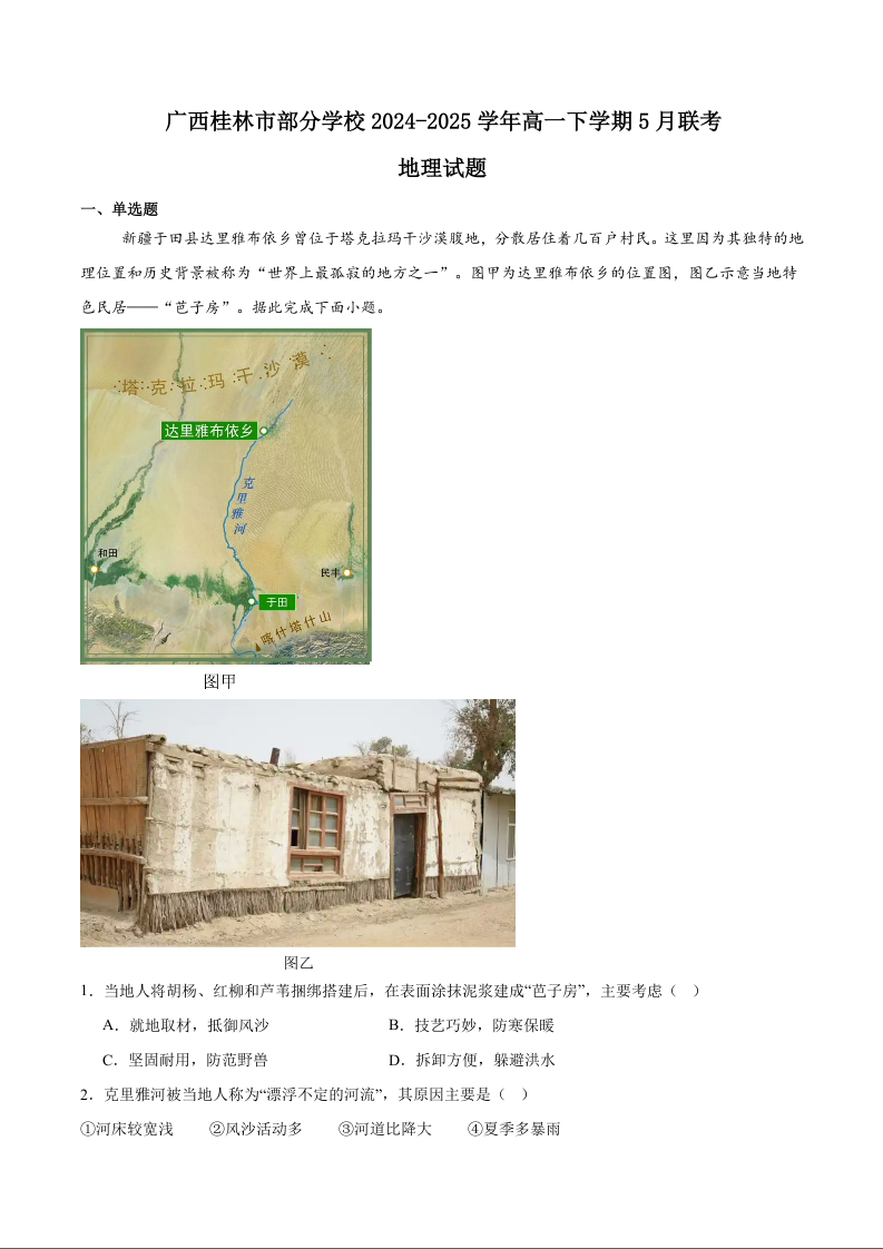 广西桂林市部分学校2024-2025学年高一下学期5月阶段检测试题地理+答案