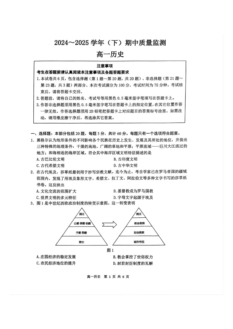 江苏省镇江市丹阳市、南通市2024-2025学年高一下学期期中考试历史+答案