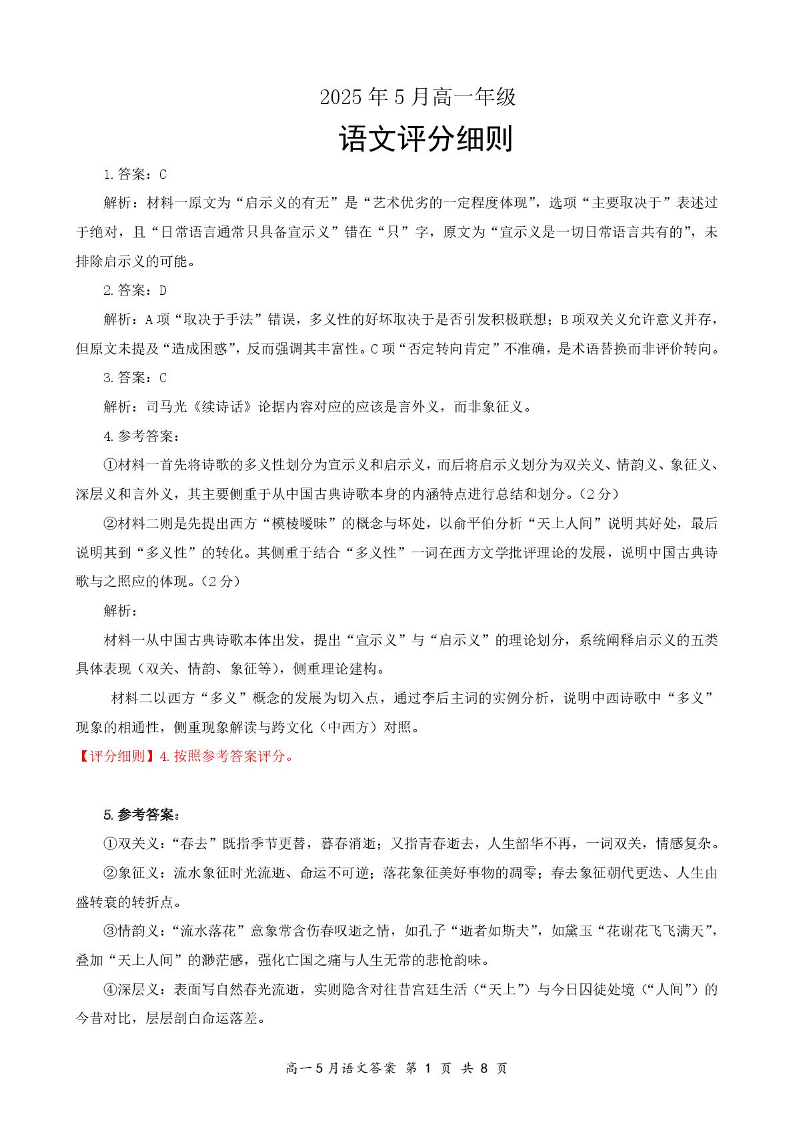 湖北省云学联盟2024-2025学年高一下学期5月月考语文答案