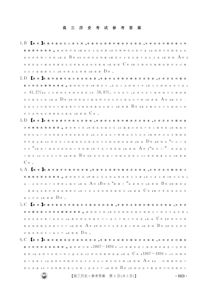 河北省雄安新区雄安部分2024届高中高三下学期一模历史答案