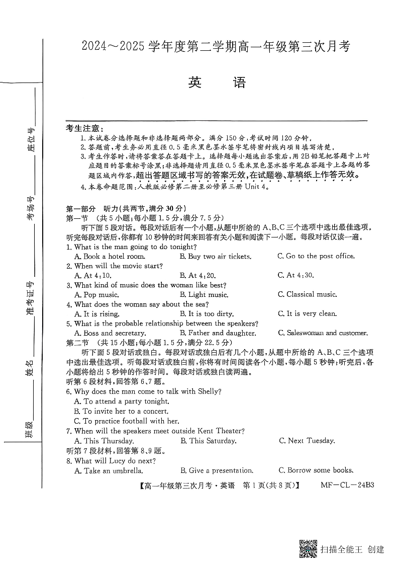 河北省沧州市四县联考2024-2025学年高一下学期6月月考英语