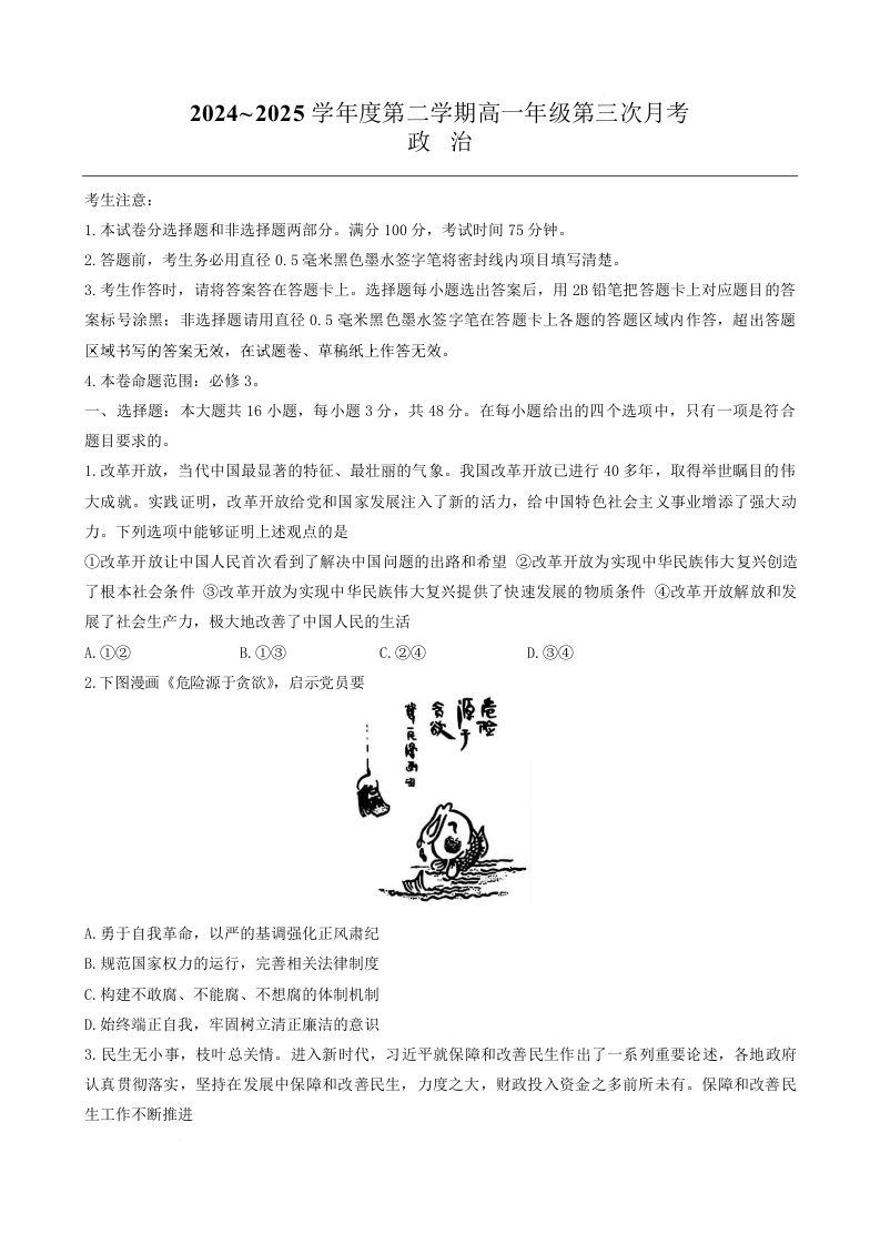 河北省沧州市四县联考2024-2025学年高一下学期6月月考政治