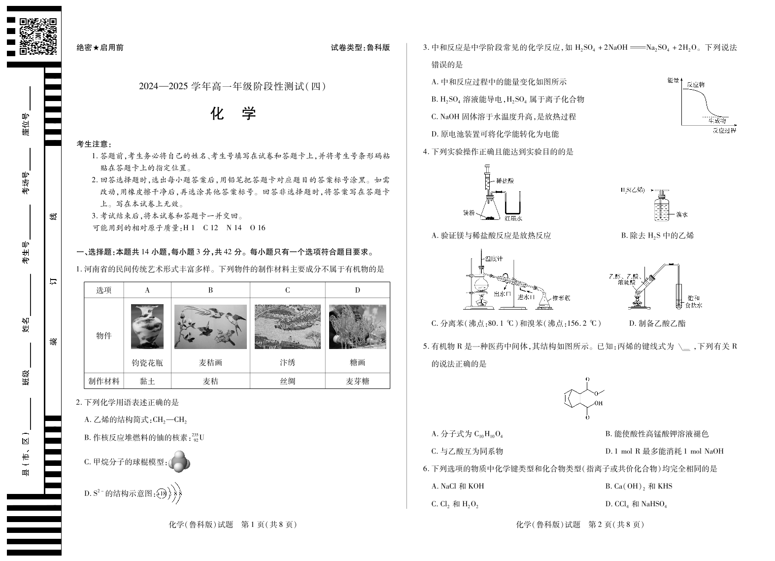 河南省部分学校2024-2025学年高一下学期阶段性测试(四)化学