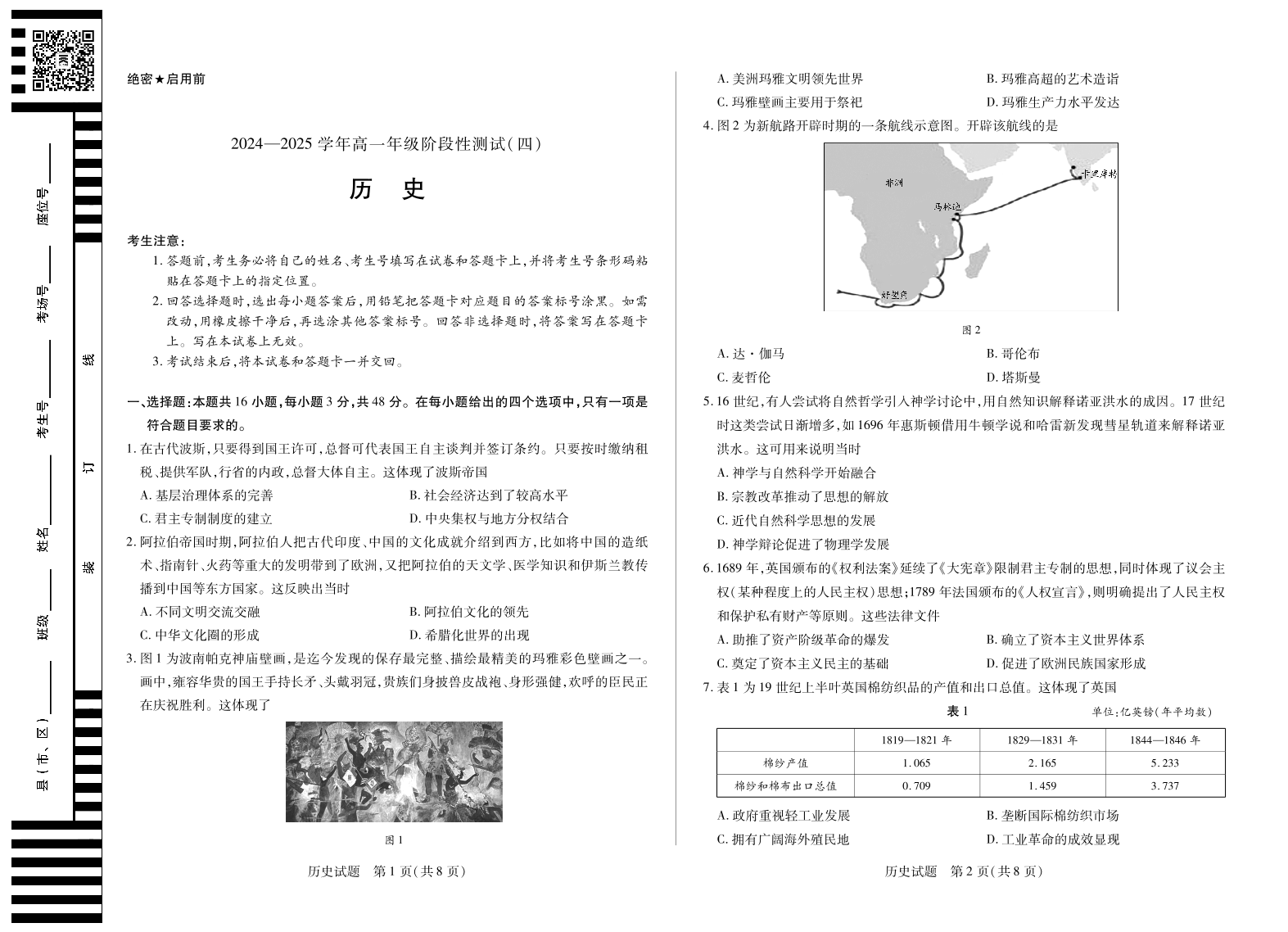 河南省部分学校2024-2025学年高一下学期阶段性测试(四)历史