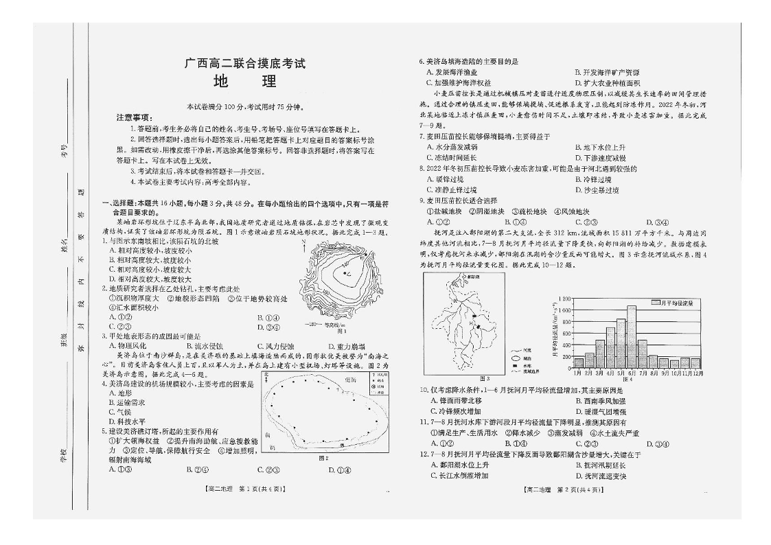 广西部分学校2024-2025学年高二下学期6月联合摸底考试地理+答案