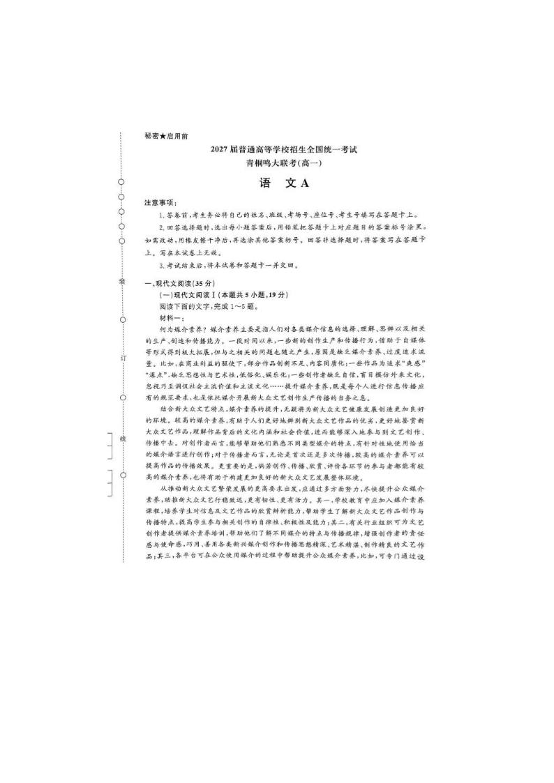 河南省青桐鸣大联考2025年6月高一下学期月考语文