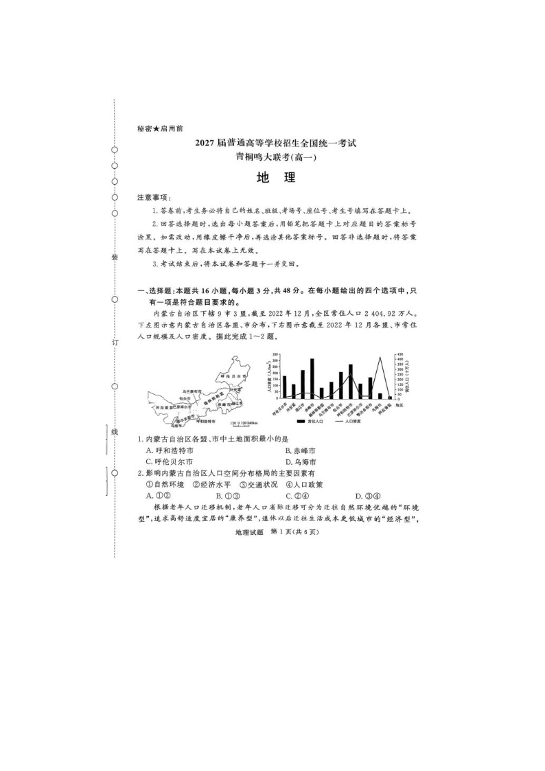 河南省青桐鸣大联考2025年6月高一下学期月考地理