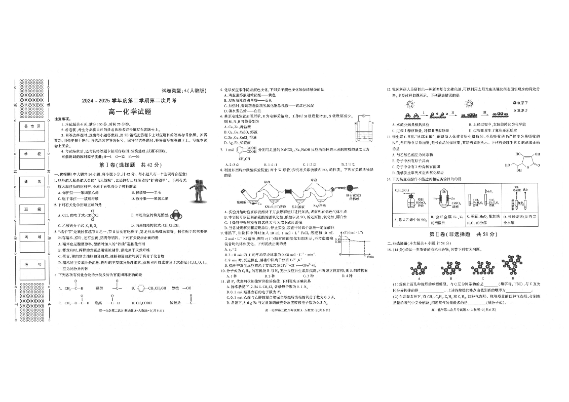 陕西省多校联考2025年高一下学期6月月考化学+答案
