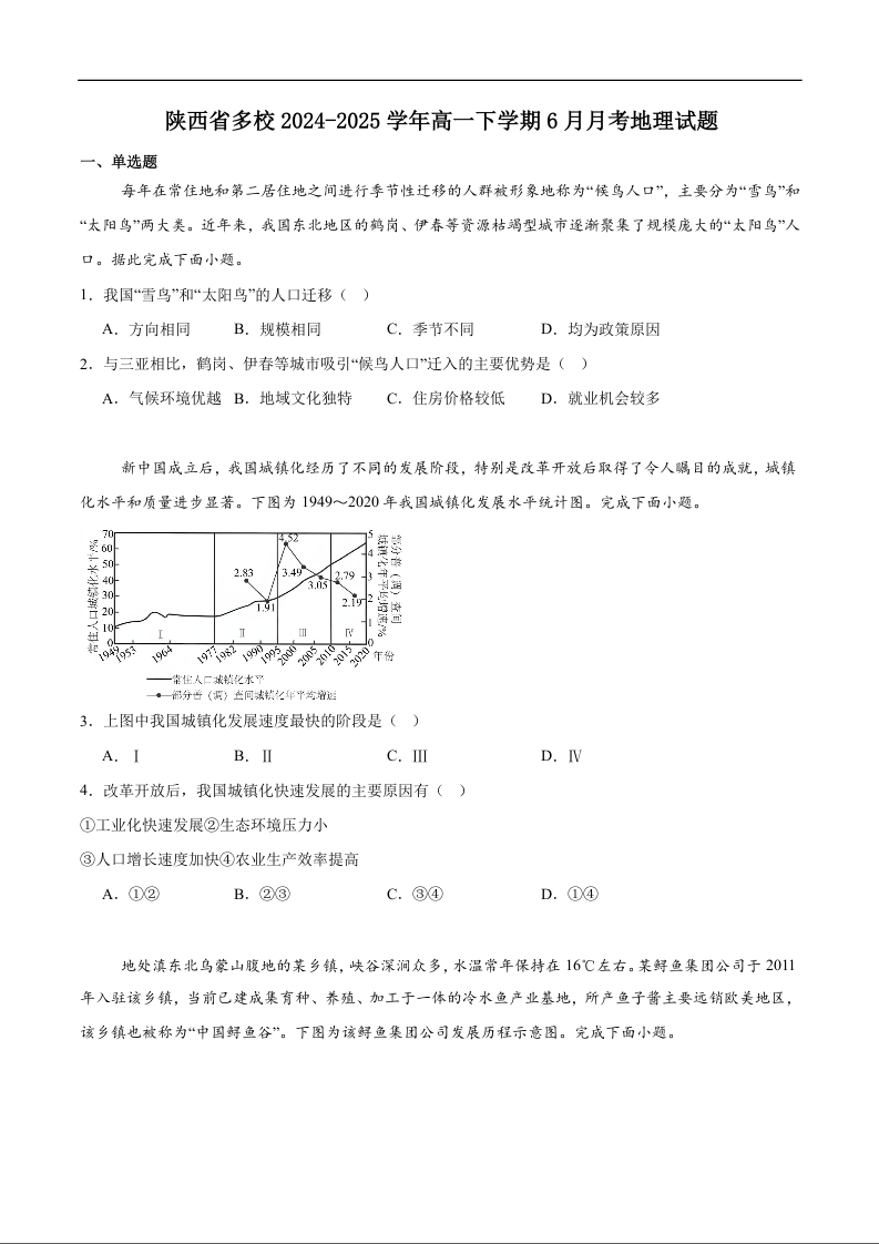 陕西省多校联考2025年高一下学期6月月考地理+答案