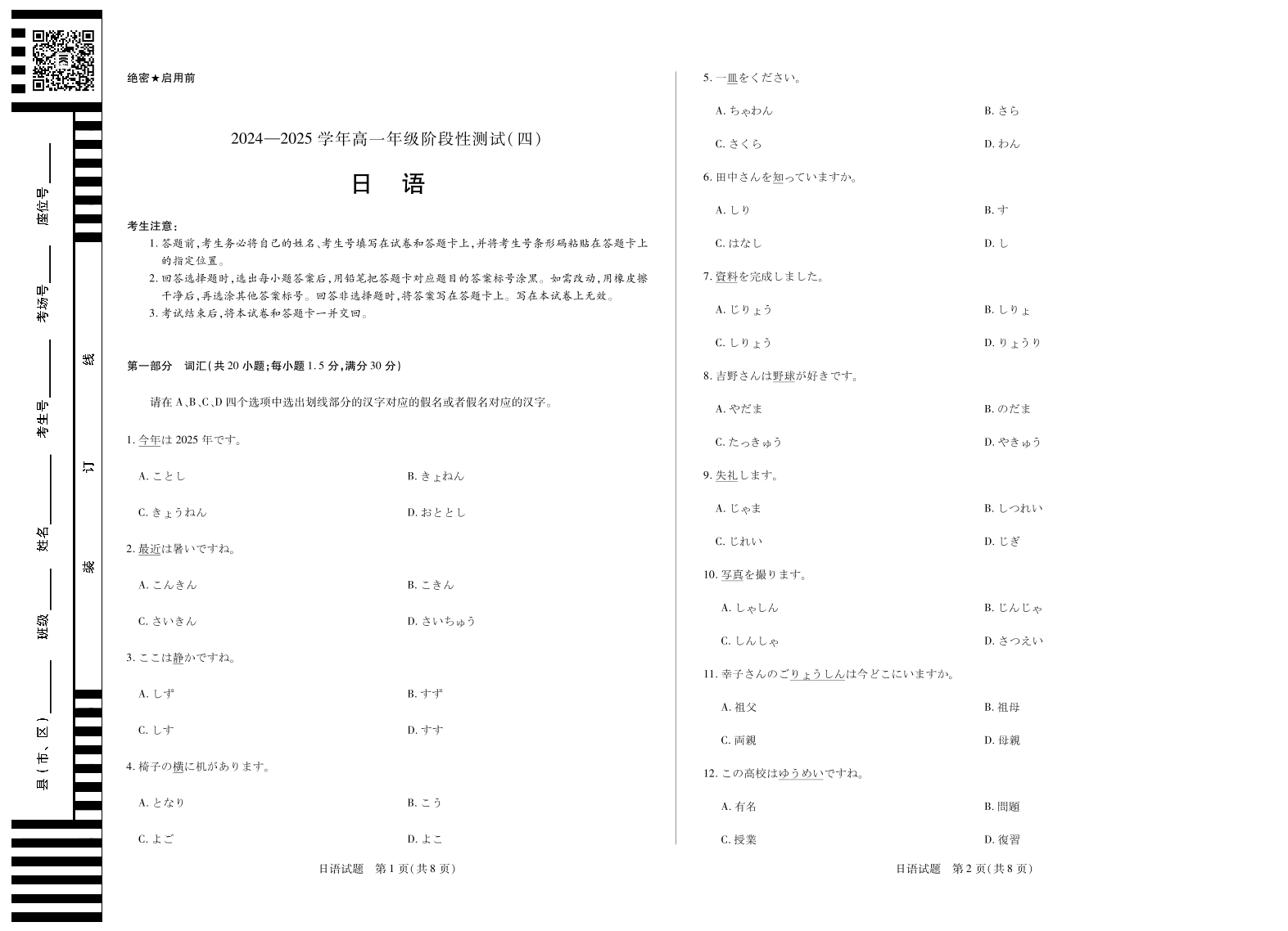 河南省部分学校2024-2025学年高一下学期阶段性测试(四)日语