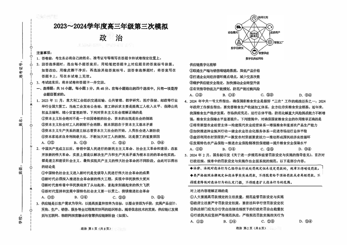 黑龙江省部分学校2024届高三下学期第三次模拟政治
