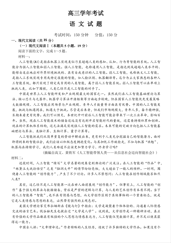 黑龙江省牡丹江市普通高中协同发展共同体2024届高三下学期第一次模拟考试语文