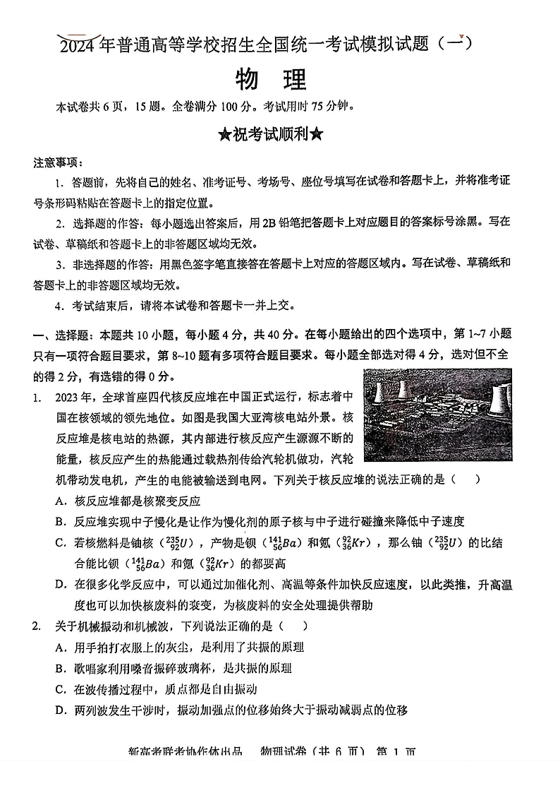 湖北省新高考协作体2024届高三下学期一模考试物理