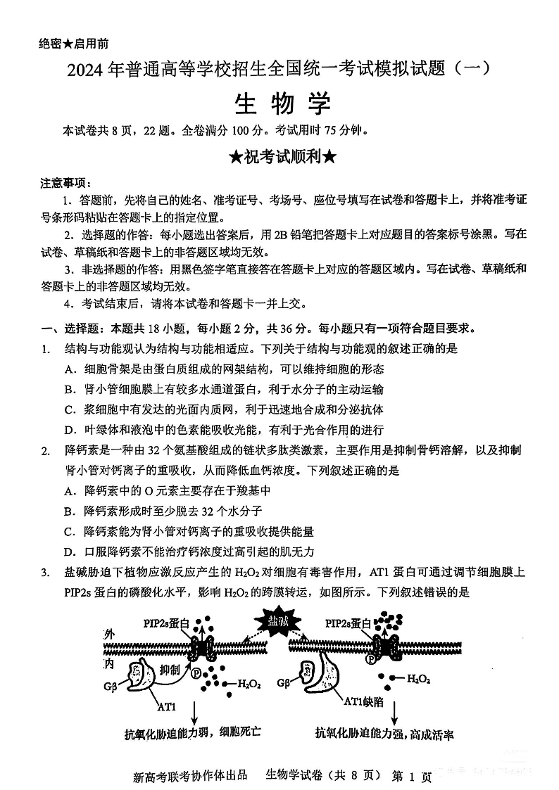 湖北省新高考协作体2024届高三下学期一模考试生物