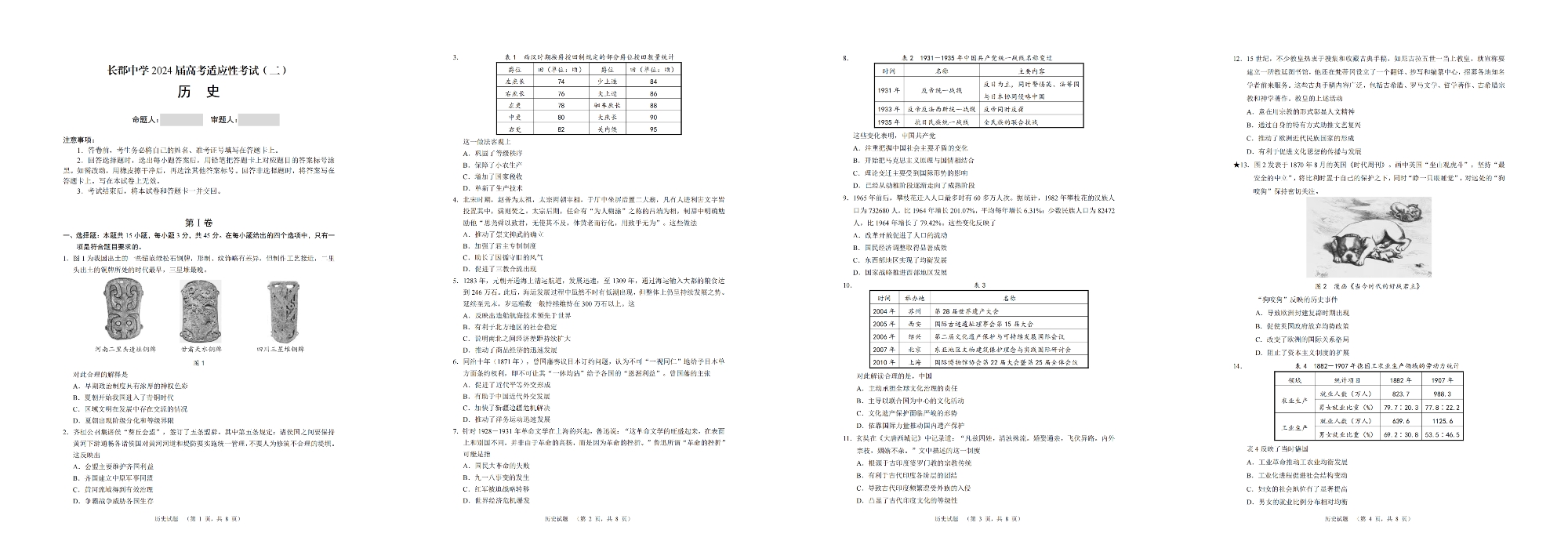 湖南省长沙市长郡中学2024届高三适应考试(二)历史