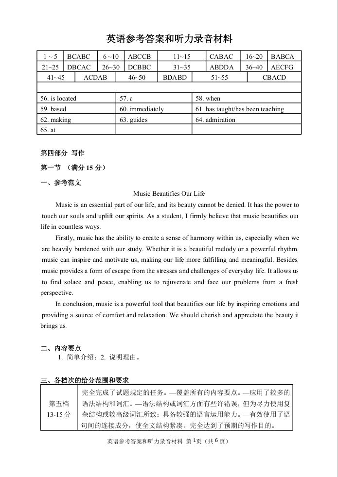 湖南省常德市2024届高三下学期3月模拟考试英语答案