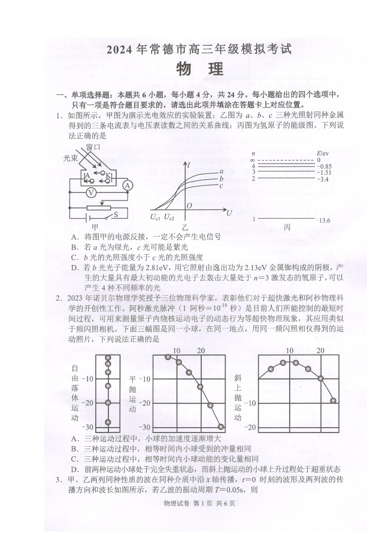 湖南省常德市2024届高三下学期3月模拟考试物理
