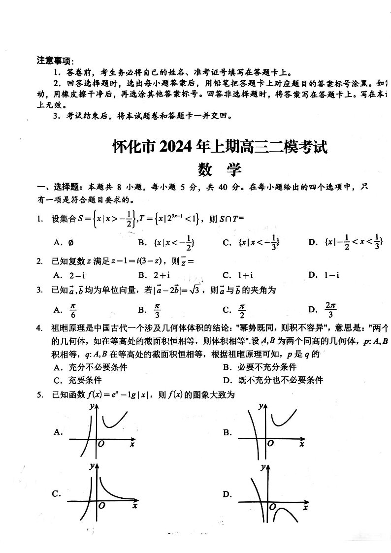湖南省怀化市2024届高三下学期第二次模拟考试(怀化二模)数学