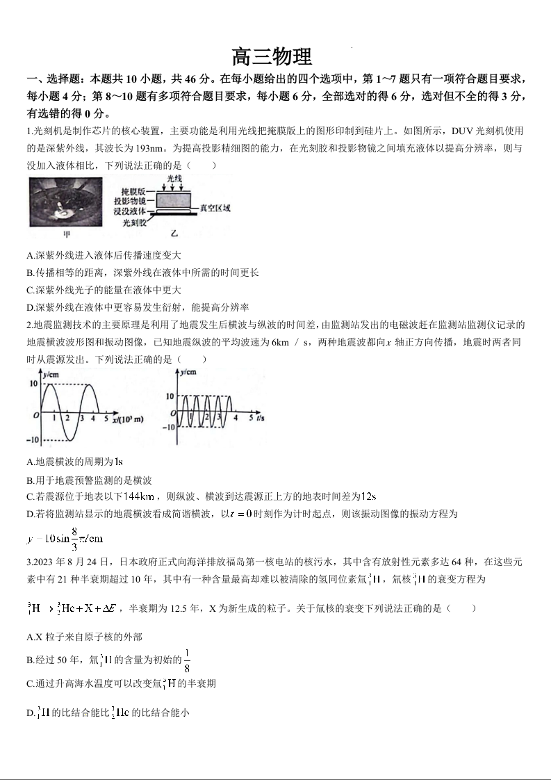 吉林省通化市梅河口市第五中学2024届高三下学期一模物理+答案