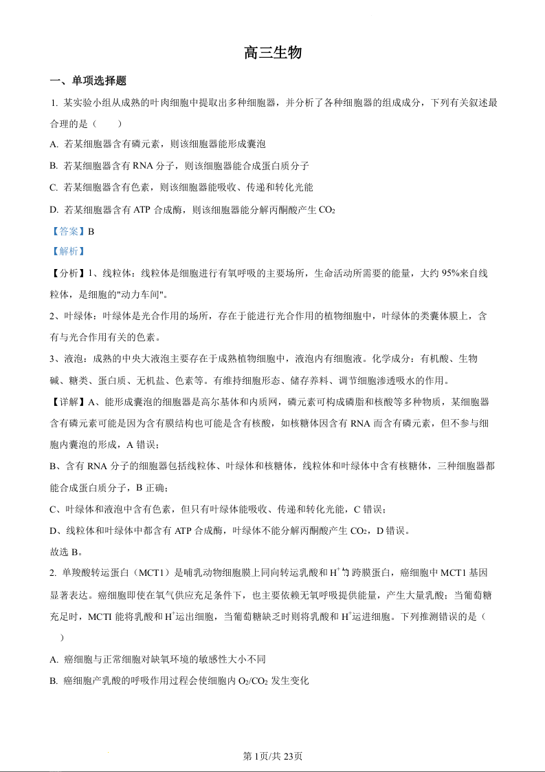 吉林省通化市梅河口市第五中学2024届高三下学期一模生物(精品解析版)
