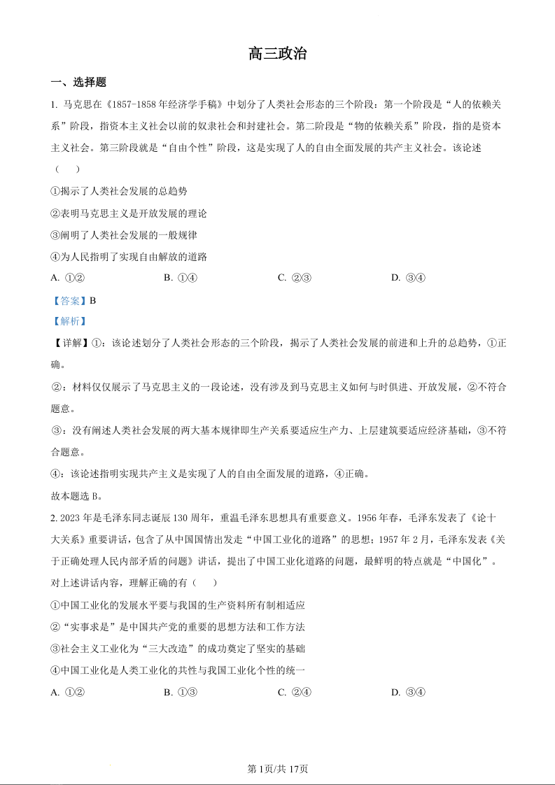 吉林省通化市梅河口市第五中学2024届高三下学期一模政治(精品解析版)
