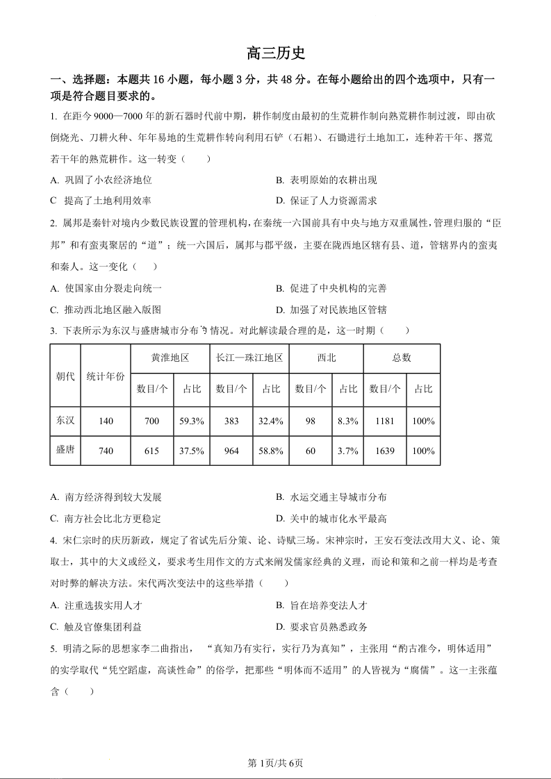 吉林省通化市梅河口市第五中学2024届高三下学期一模历史(原卷版)