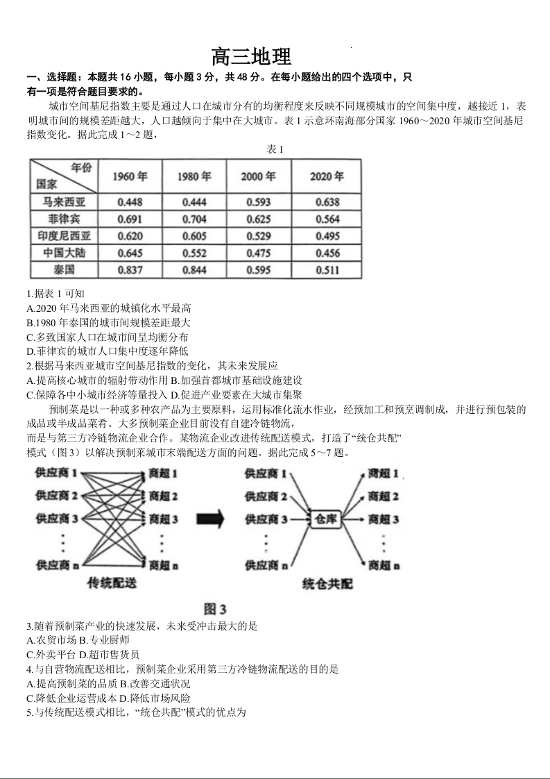 吉林省通化市梅河口市第五中学2024届高三下学期一模地理+答案