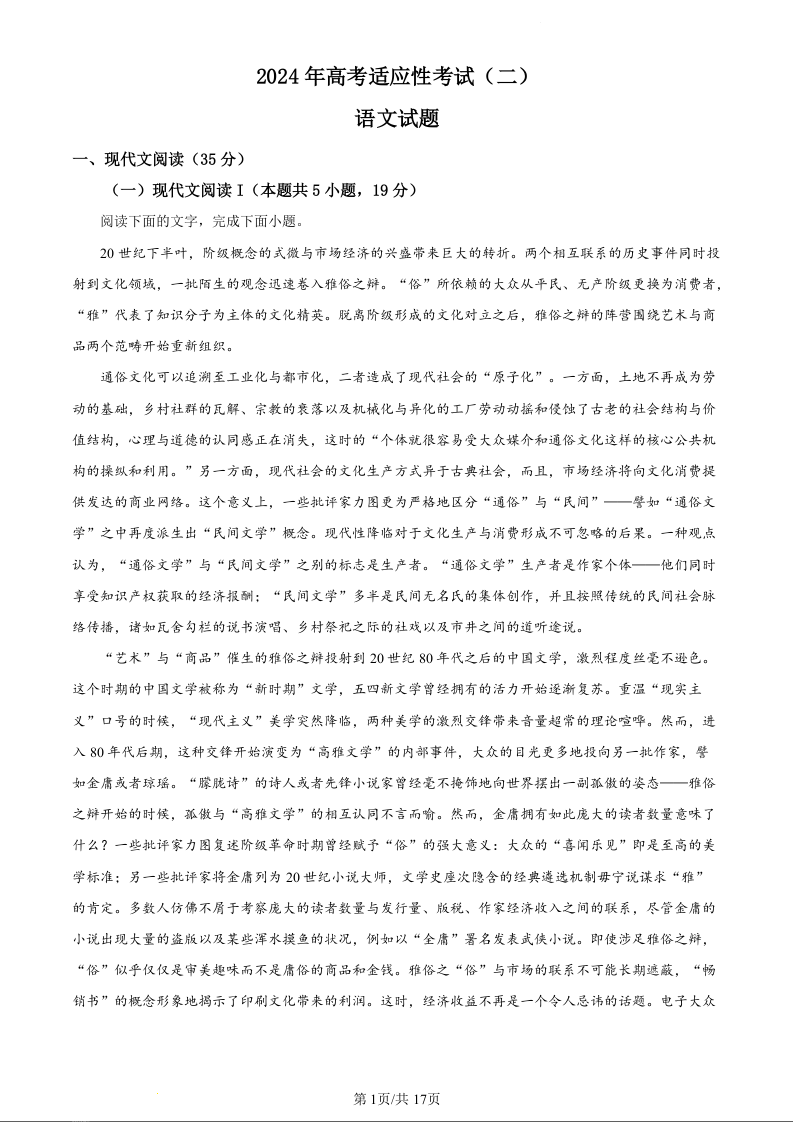 江苏省南通市如皋市2024届高三下学期适应性考试(二)(南通2.5模)语文(精品解析版)