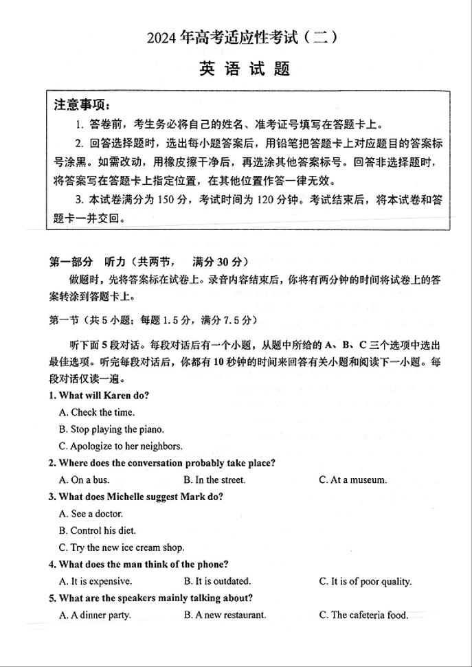 江苏省南通市如皋市2024届高三下学期适应性考试(二)(南通2.5模)英语+答案