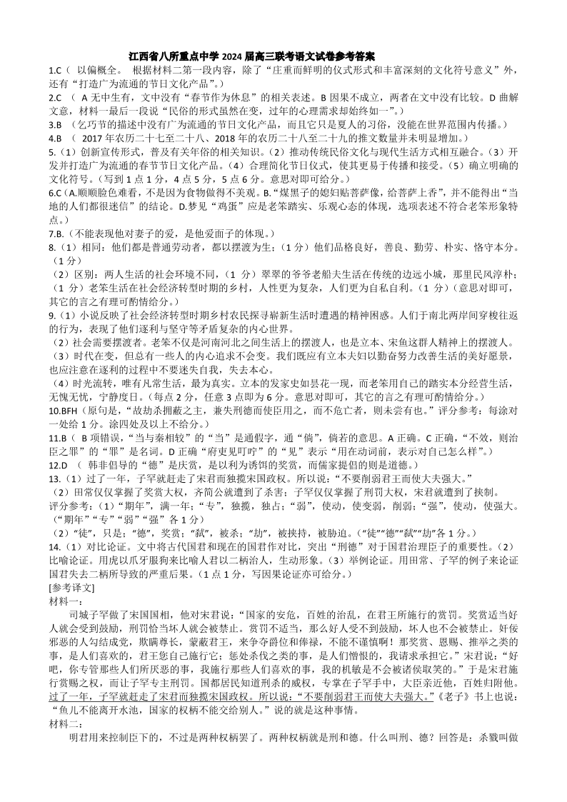 江西省八所重点中学2024届高三下学期4月联考语文答案