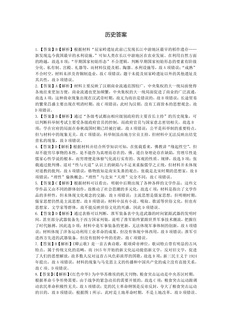 江西省八所重点中学2024届高三下学期4月联考历史答案