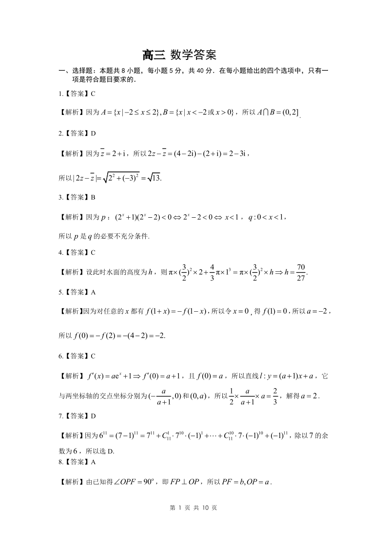 江西省恩博2024年高三4月联考(赣抚吉)数学答案