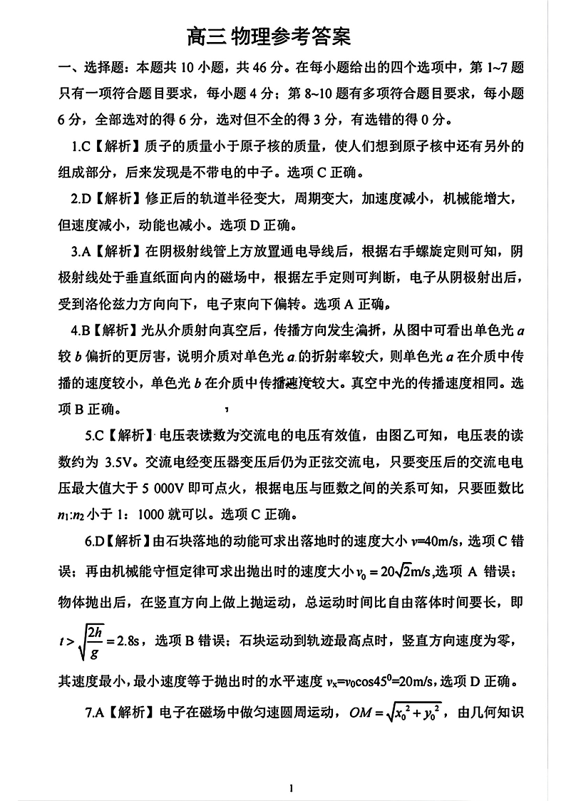 江西省恩博2024年高三4月联考(赣抚吉)物理答案