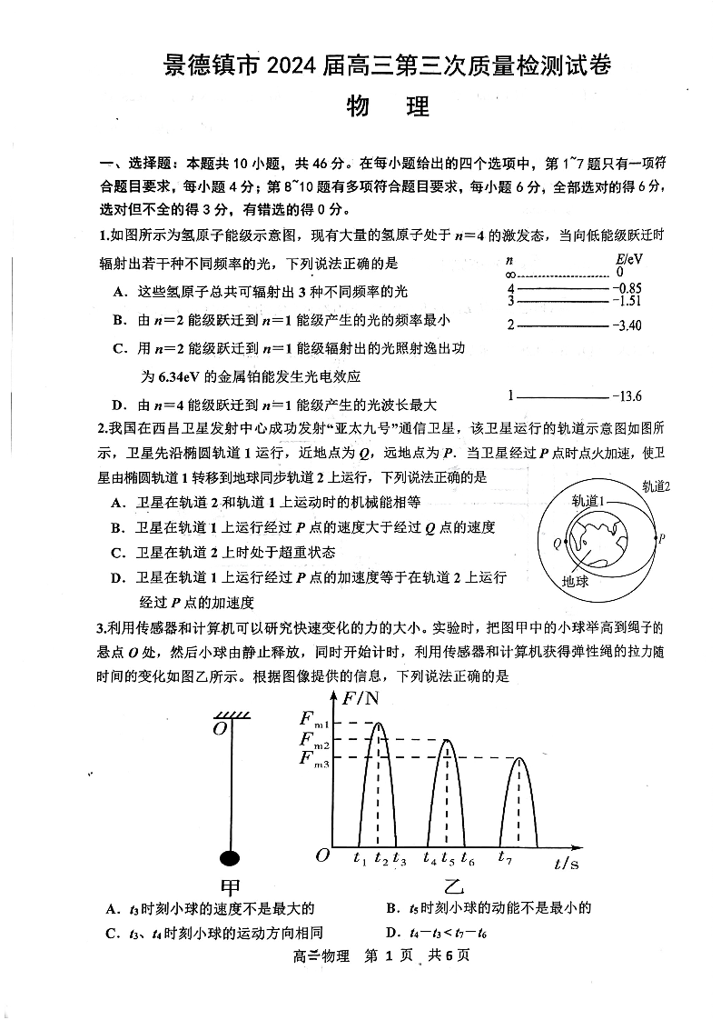 江西省景德镇市2024届高三第三次质量检测(景德镇三模)物理