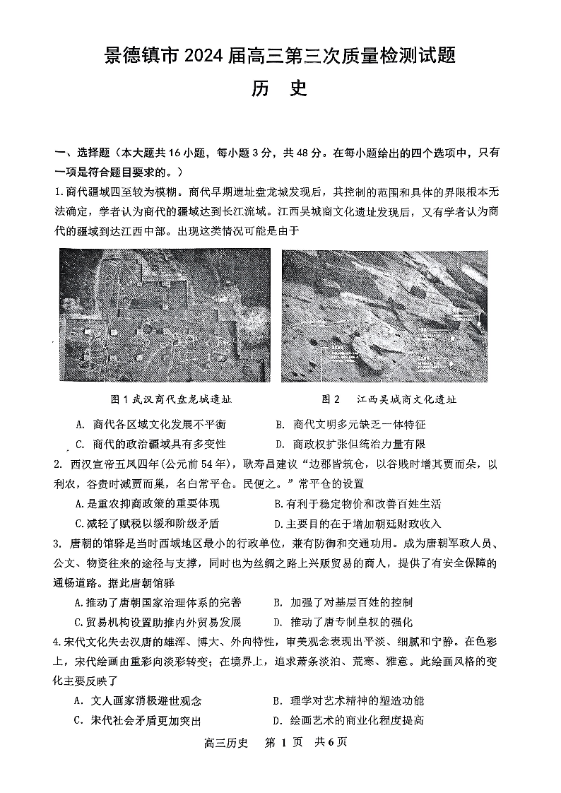 江西省景德镇市2024届高三第三次质量检测(景德镇三模)历史