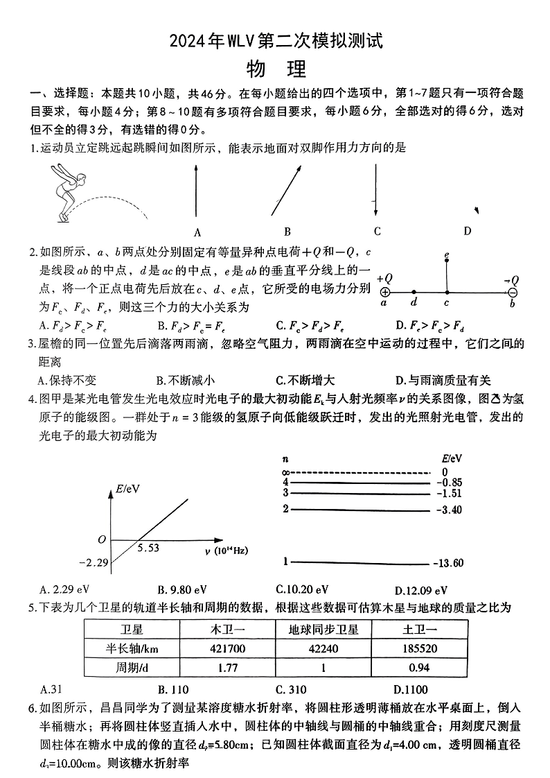 江西省南昌市2024届高三下学期二模考试(南昌二模)物理+答案
